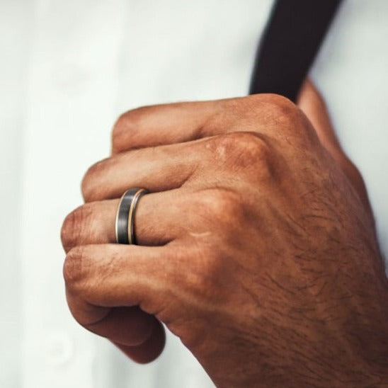 Nereus Black Mens Tungsten Golden Bands Ring 8mm